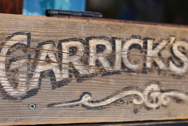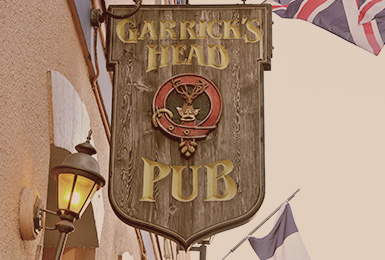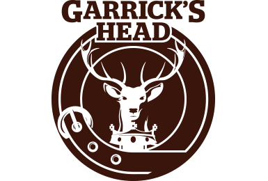 Over our 125+ years as a pub, Garrick's Head has seen many variations on our logo and style. Without a doubt, the elk head coat of arms mounted above our fireplace in the old pub is the root of all of our iconography; despite its foggy origins and backstory, this same imagery was used on the hanging tavern sign and also our windows.